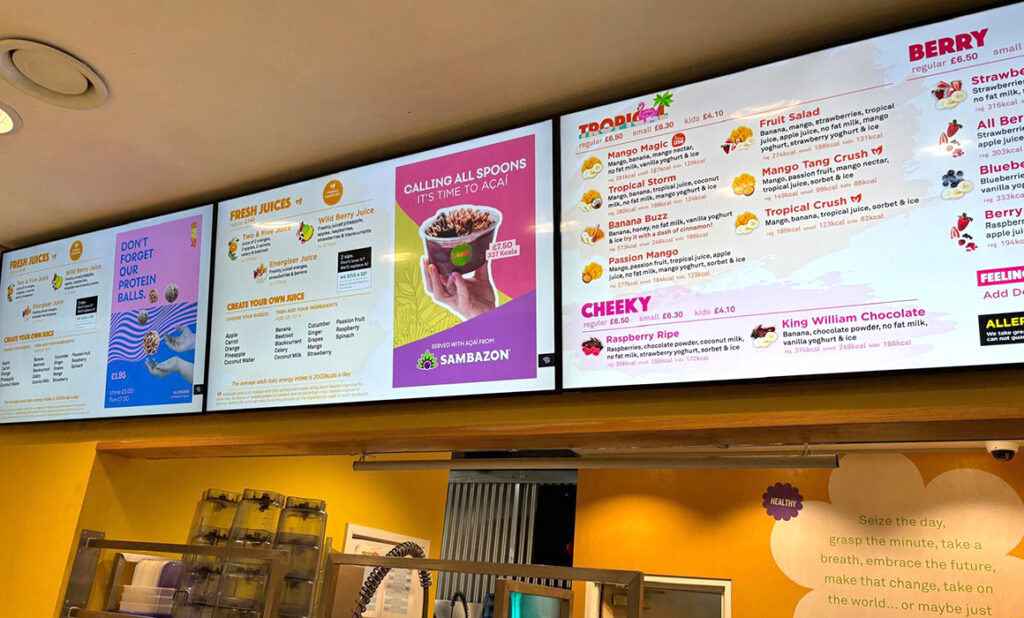 At the start of the year we manufactured and installed smart digital signage for national smoothie brand Boost Juice, partnering with digital companies NowSignage and AllSee Technologies.
