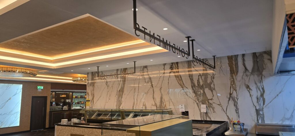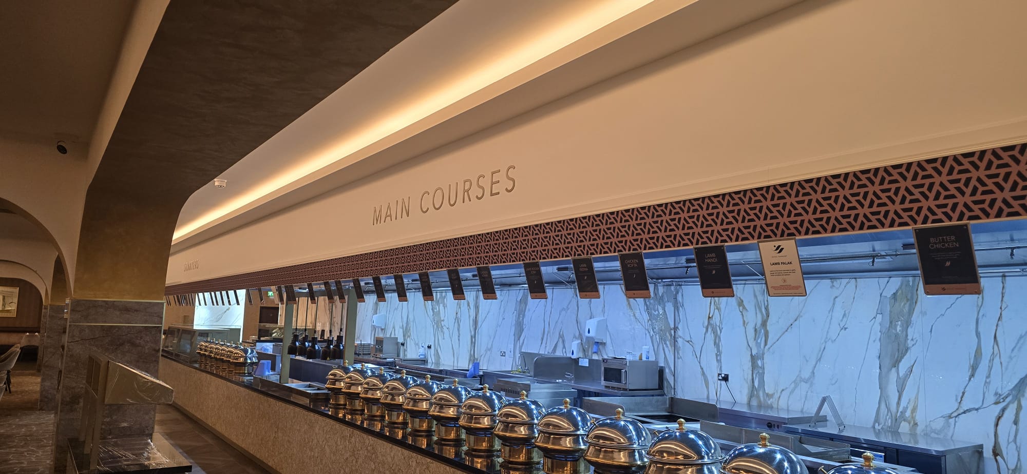 A key element to our project was devising and creating the menu boards for above the buffet servery counter. While the jury on official measurements is out, Jay Rayner reported in the Financial Times that it is “so long you could run time trials down it”.