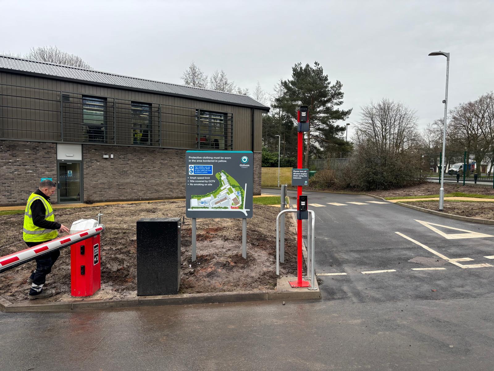 Comprehensive on-brand internal and external wayfinding and entrance signage for Oldham’s new recycling depot at Alexandra Park.