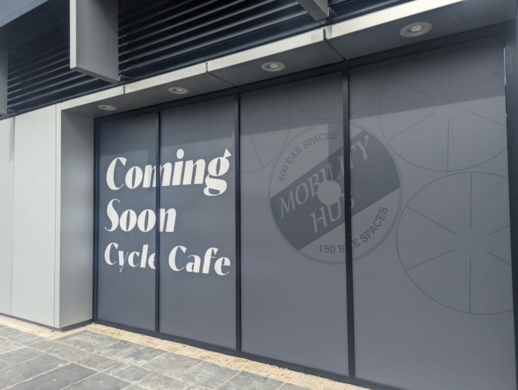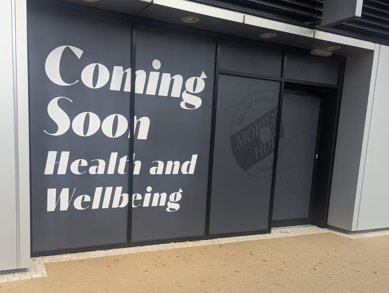 With the ground floor units initially vacant at the hub’s grand opening, it was important to screen off the units ahead of fit out works taking place, while at the same time reinforcing the mobility hub’s branding and presence.