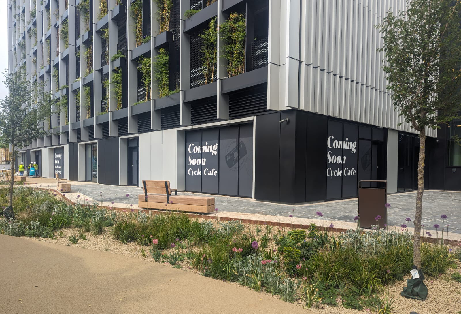 One of the UK’s first-of-its-kind mobility hubs, providing plenty of secure bike parking, EV charging points, parcel lockers (to reduce delivery traffic) and much more.