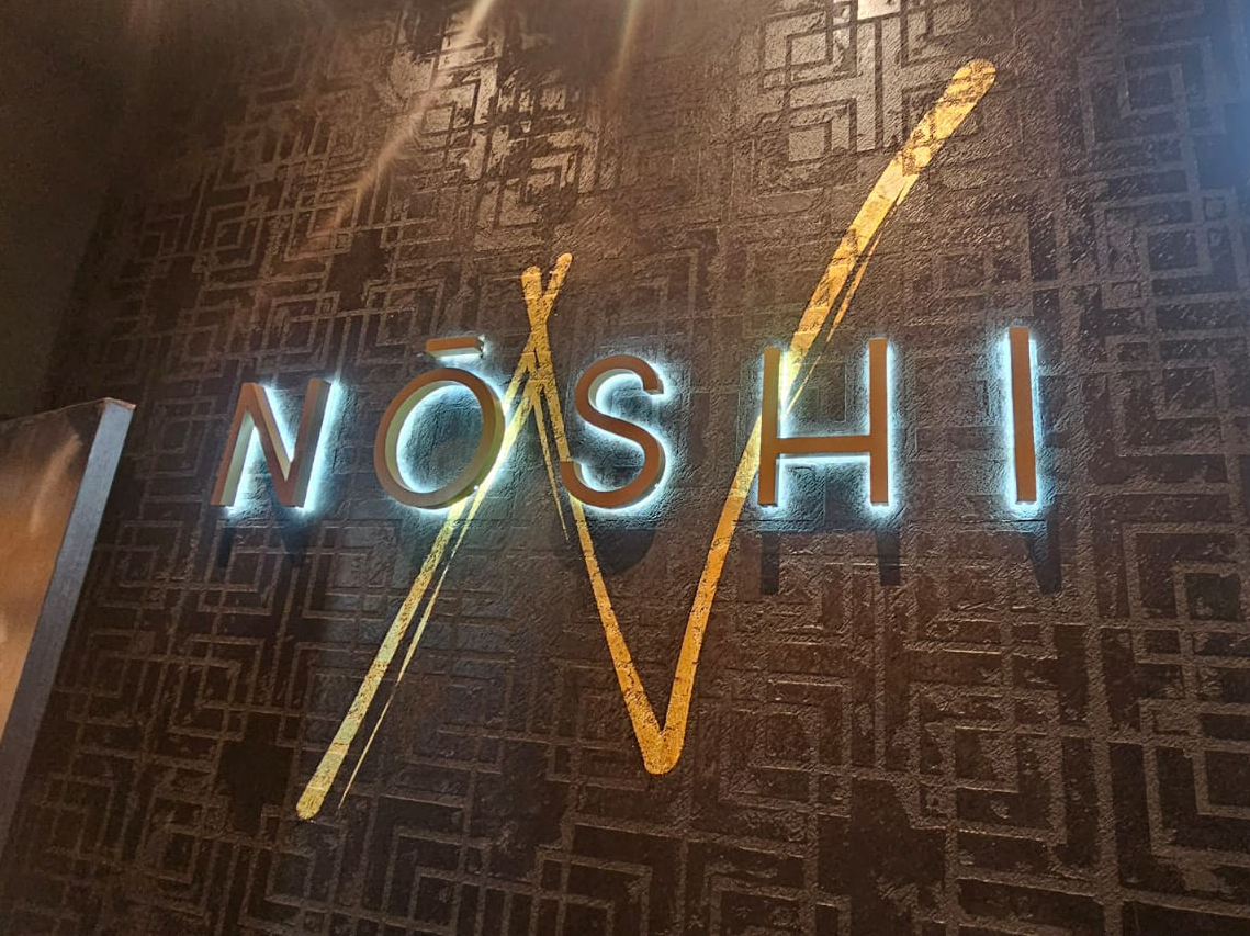 Noshi restaurant offers a special experience to clientele and that experience starts at the door. The brief was for luxurious, memorable signage that would turn heads.